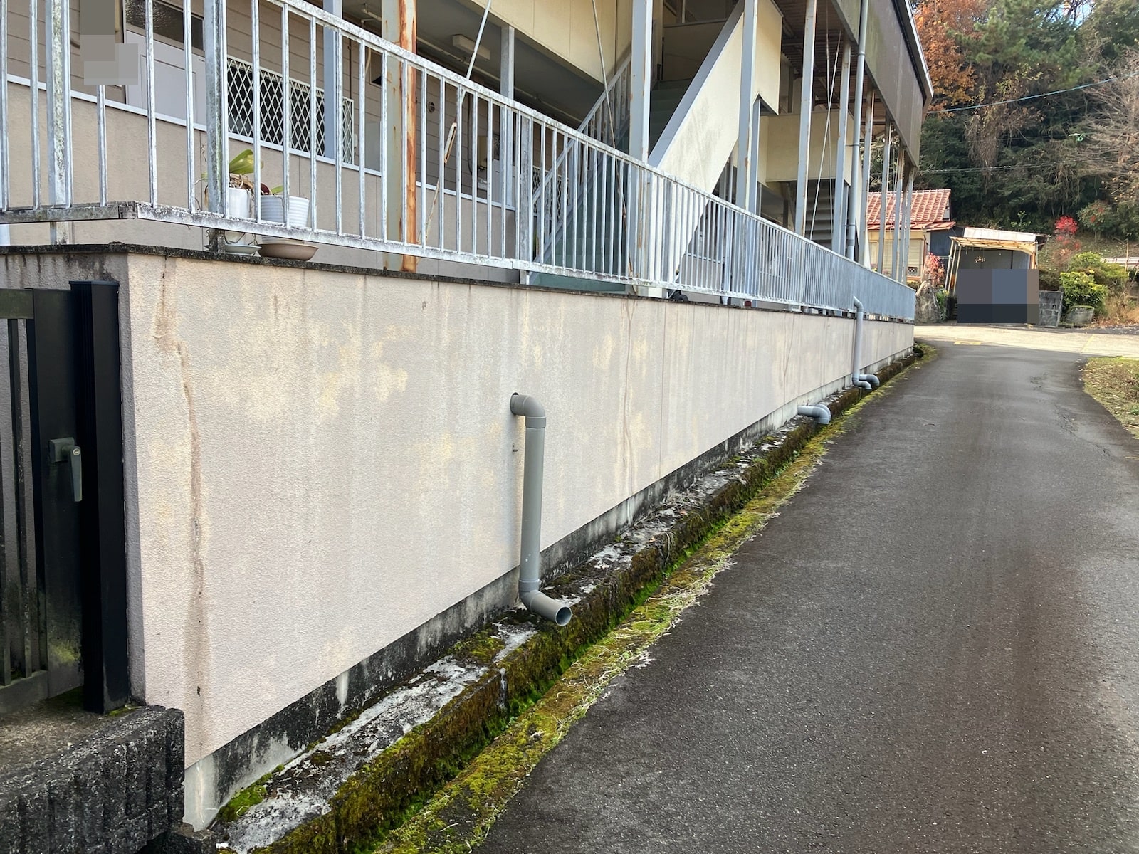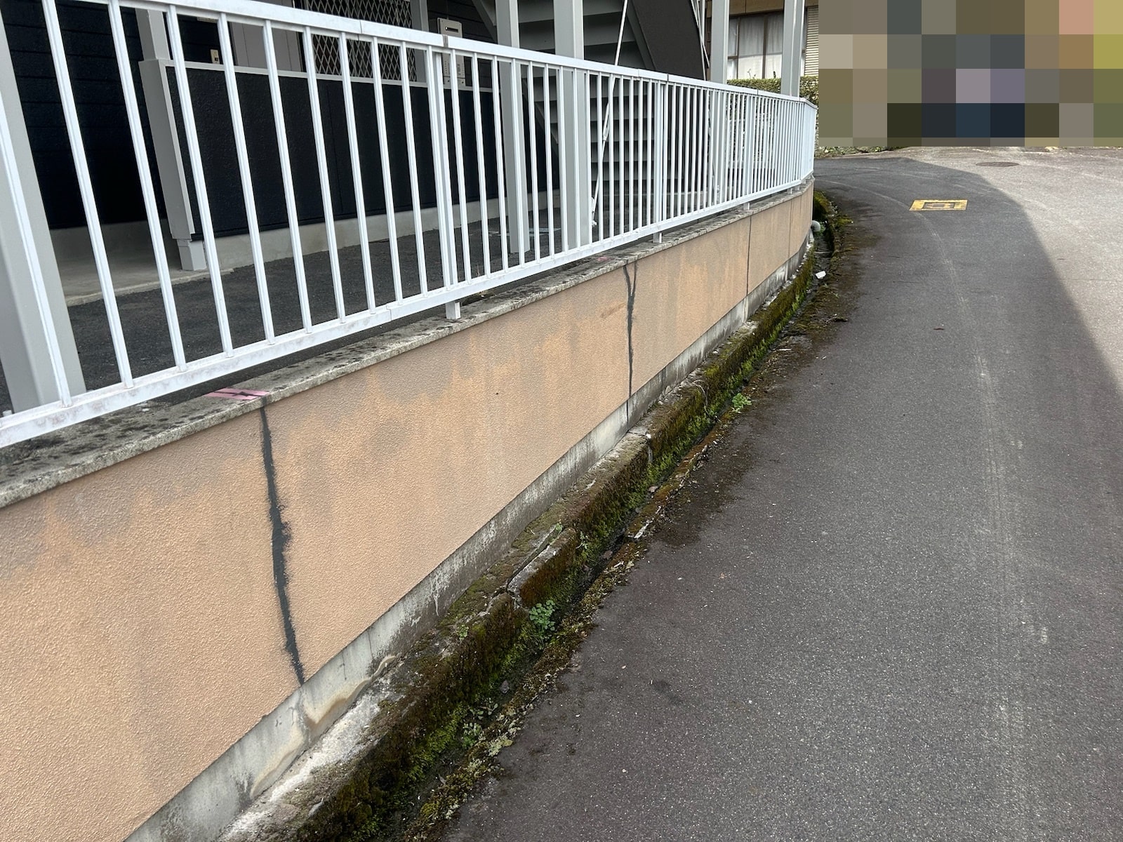 外壁は、色の退色が進み、汚れが多くみられ、ひび割れや苔の発生も見られました。